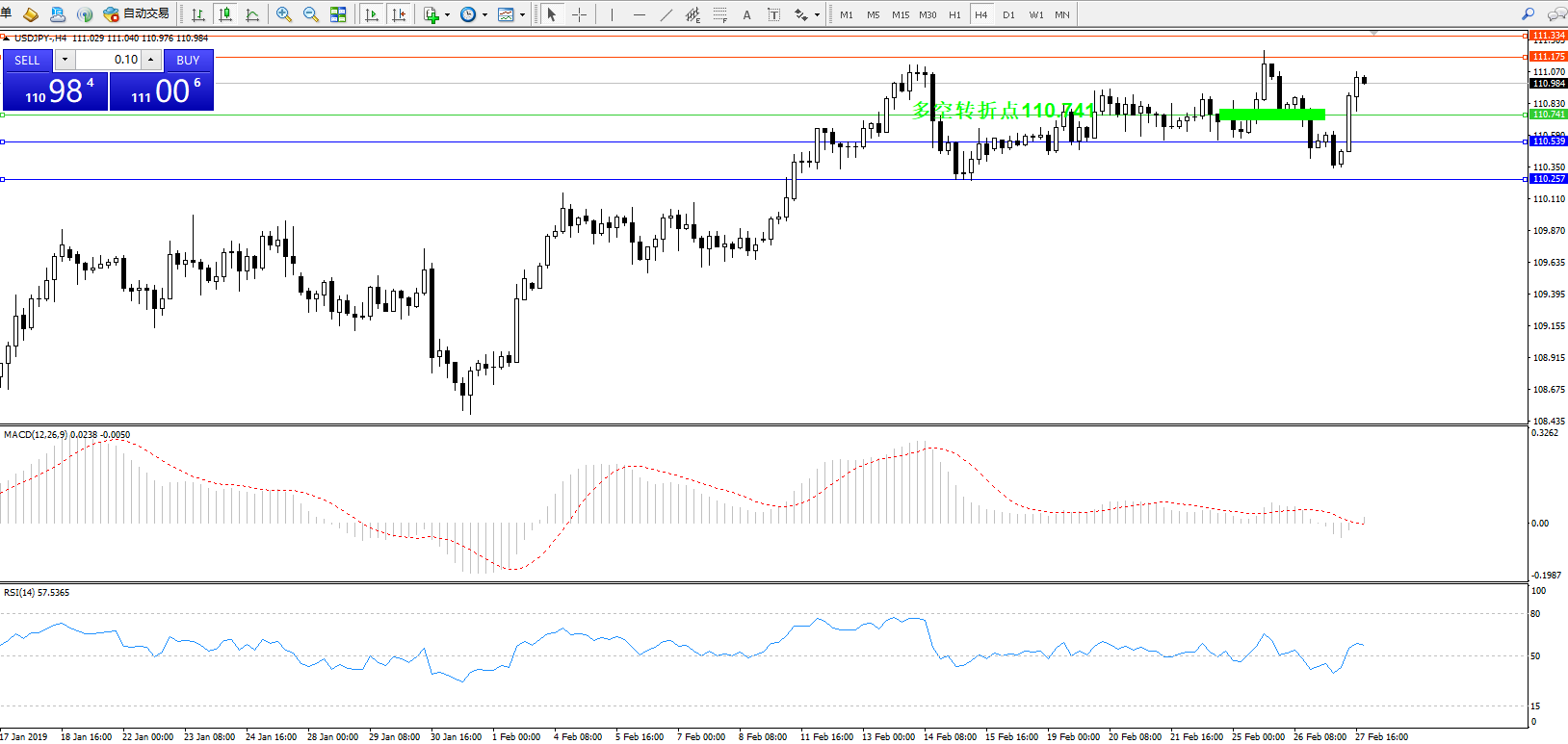 备选策略:110.741下方看跌,目标110.539、110.257