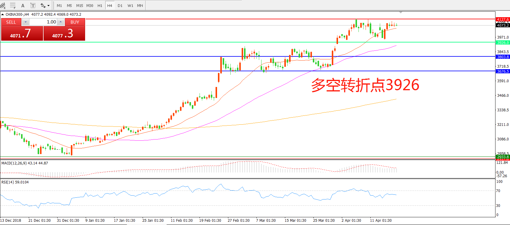 4小时图看,中华指数全天呈现窄幅震荡走势,整体来看依然处于上升趋势,上方阻力临近,重点关注4127一线得失。MACD红柱减少,RSI指标拐头,日内延续震荡概率较大。
