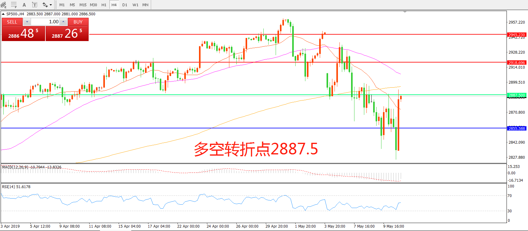 交易策略:在2887.5.之下看跌,目标2855.50     2817.50