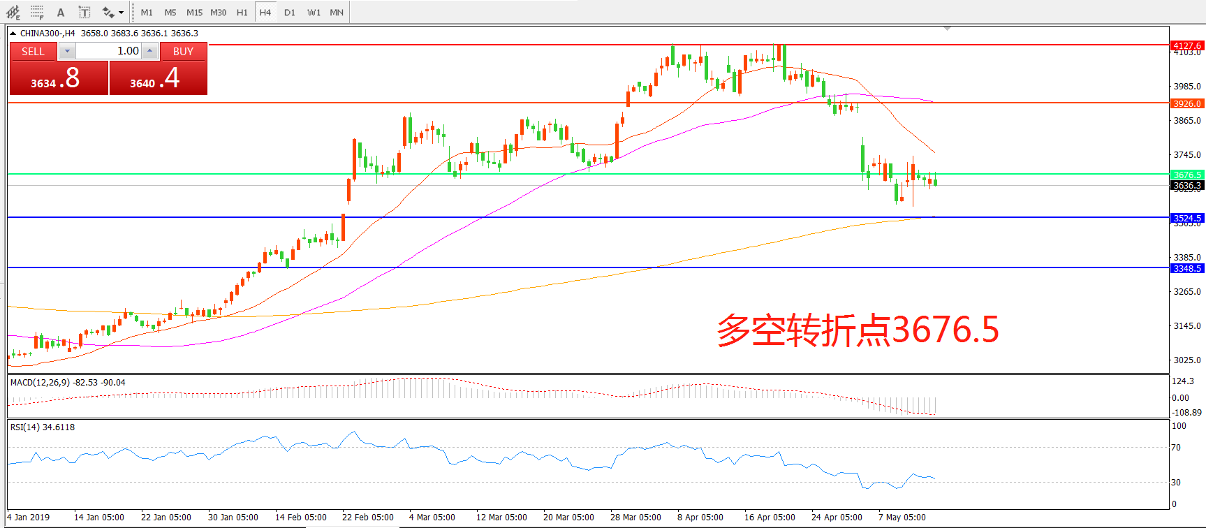 多空转折点:3676.50