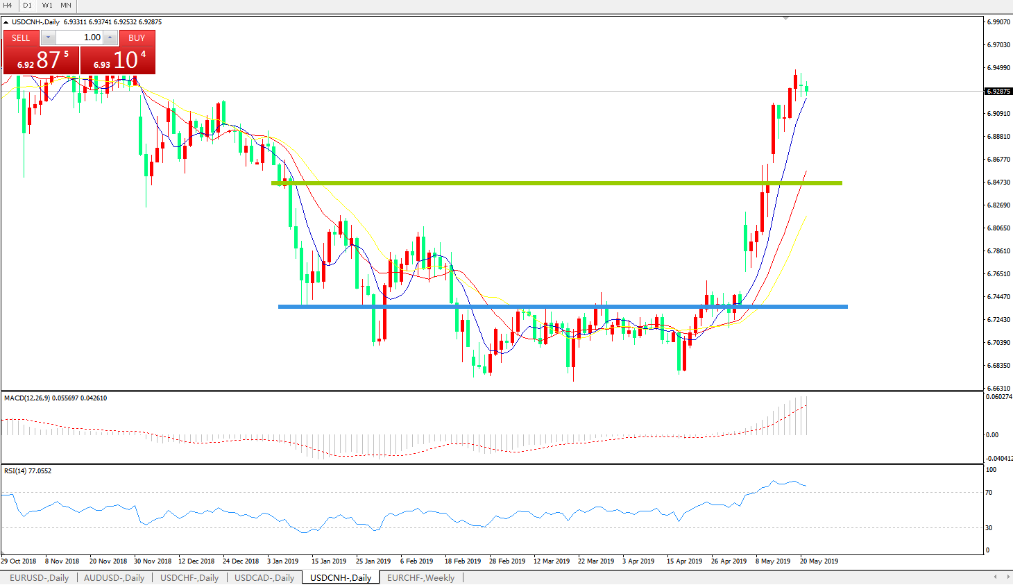 交易策略6.8450之上,看涨,目标价位为6.9200,然后为6.9400