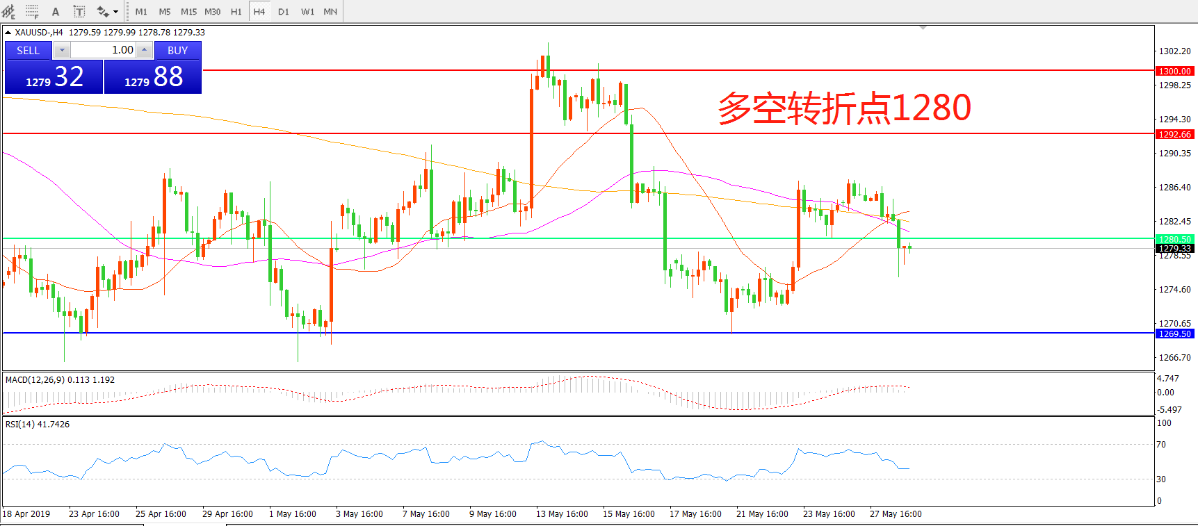 多空转折点:1280.50