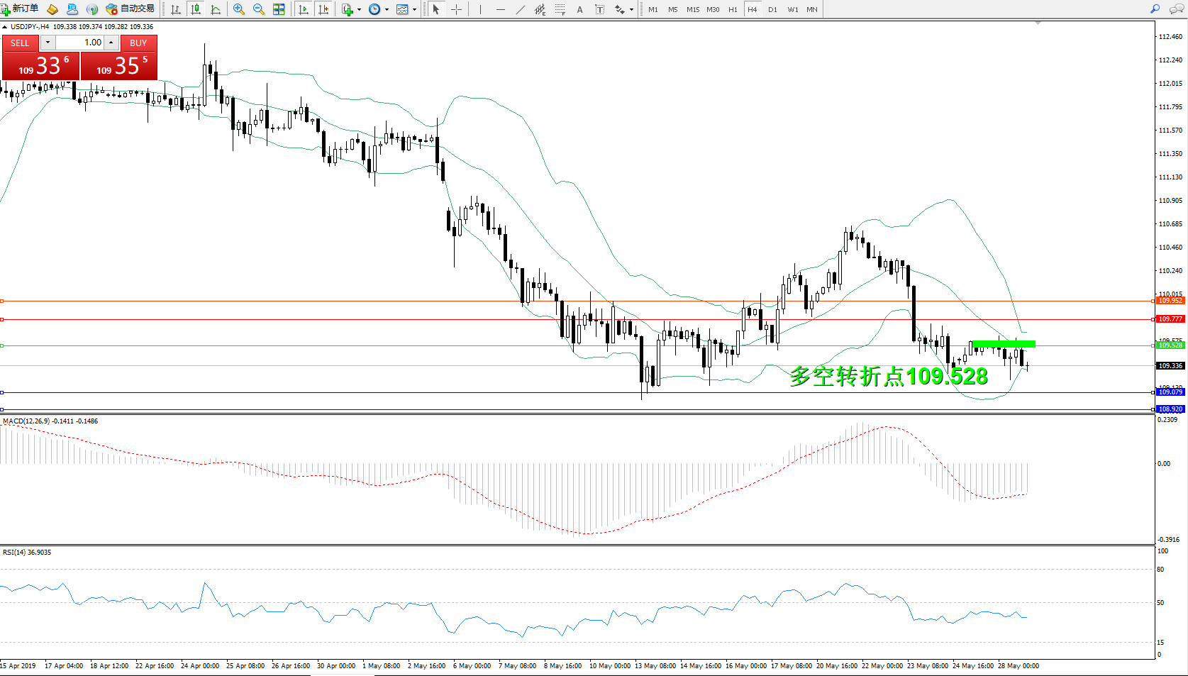 交易策略:109.528下方看跌,目标109.079108.920