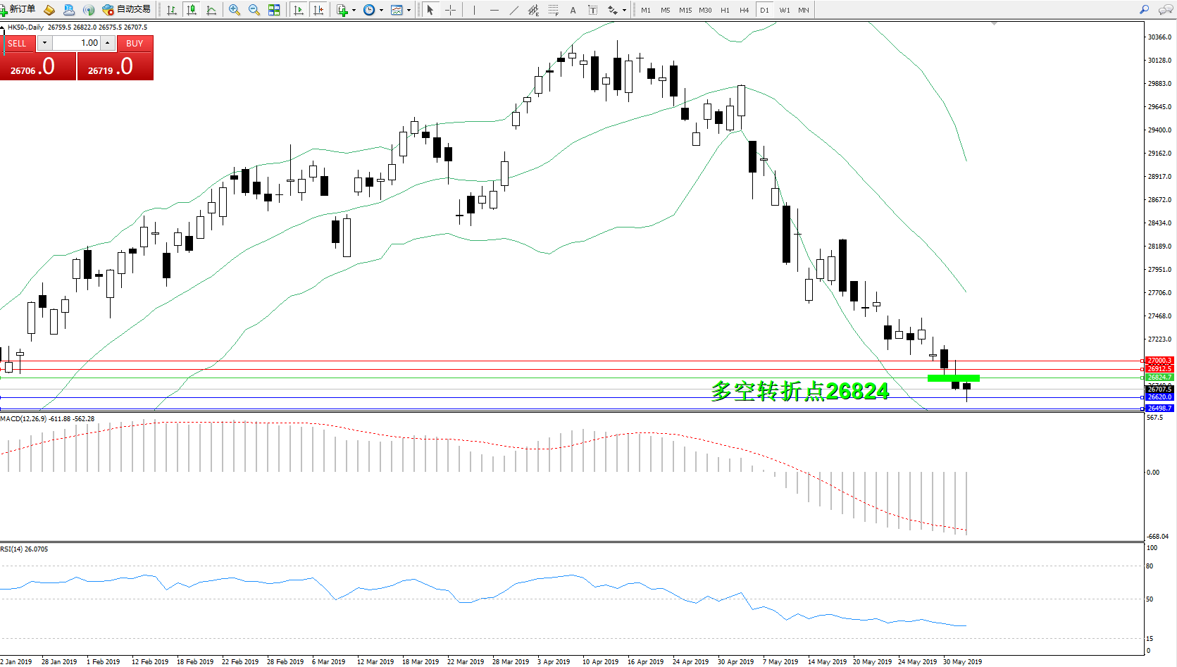 技术点评:空头持续缓慢下挫,跌势没有结束,布林带指标处于收口态势,MACD指标空头区域继续地位徘徊,RSI指标空头区域地位平移中;