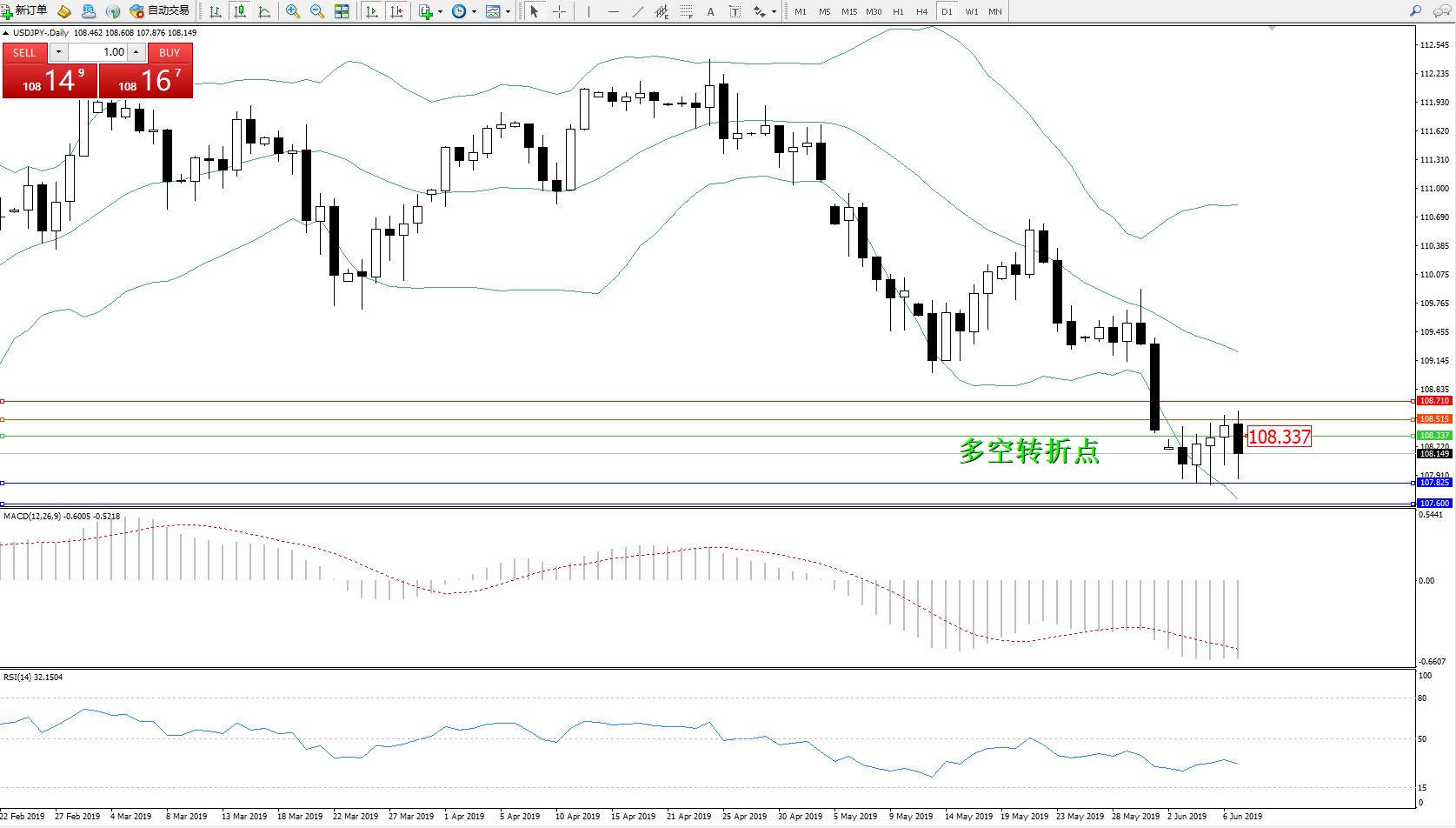 美日下跌触及两日低点,因美国5月季调后非农就业人口增加7.5万,大幅不及预期,薪资年率降至3.1%,强化了年内美联储降息两次的预期。并且这暗示美国未来经济前景更悲观,避险货币均走高,另外此前美墨谈判重启,国际贸易风险缓和,这可能限制了日元涨幅。