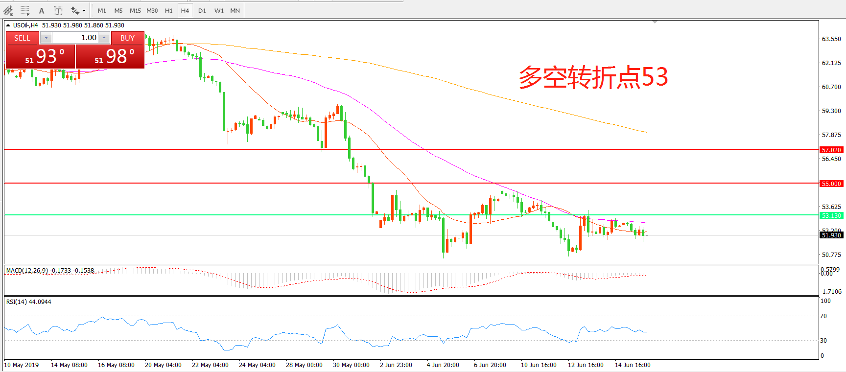 交易策略:在53.00之下看跌,目标50.00 46.00