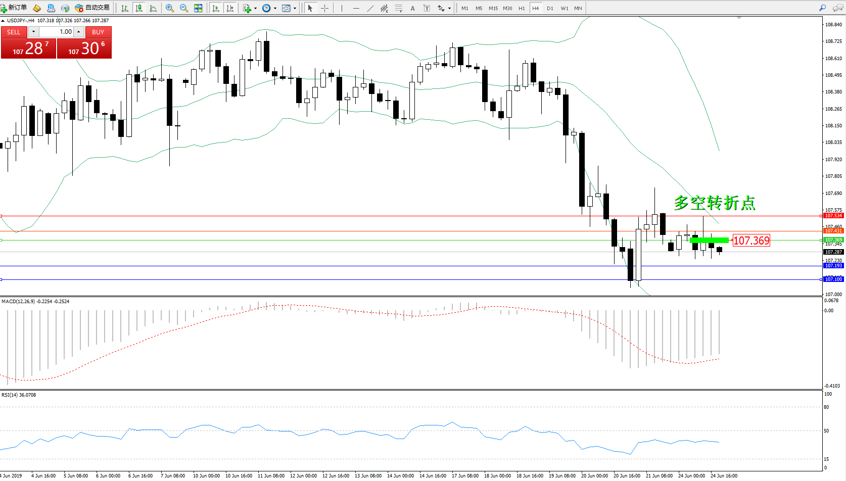 交易策略:107.369下方看跌,目标107.193107.100