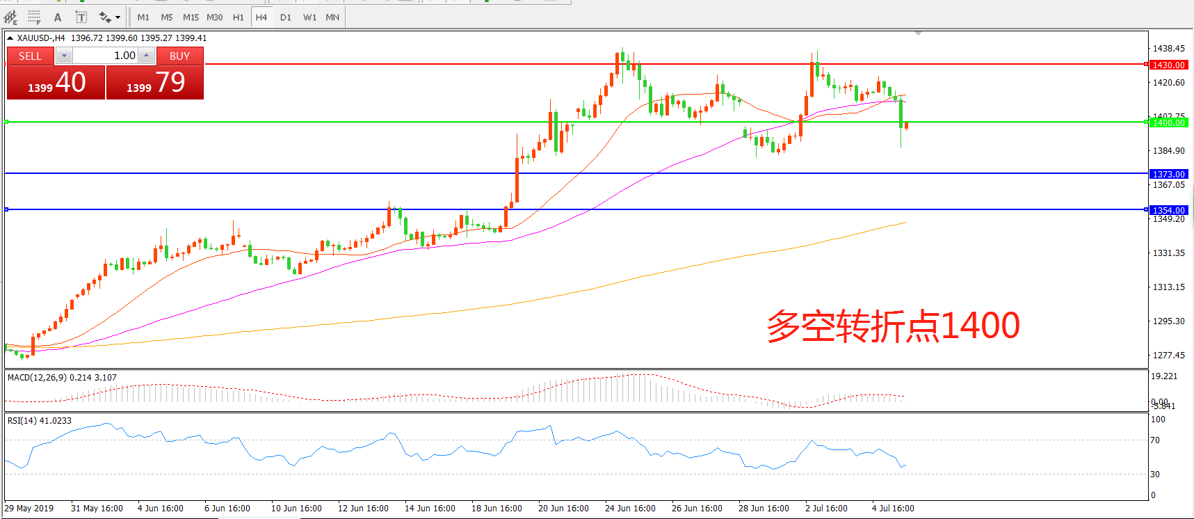 备选策略:在1400.00之下看跌,目标1373.00 1354.00