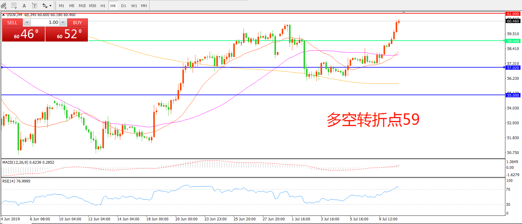 交易策略:在59.00之上看涨,目标61.00    64.00
