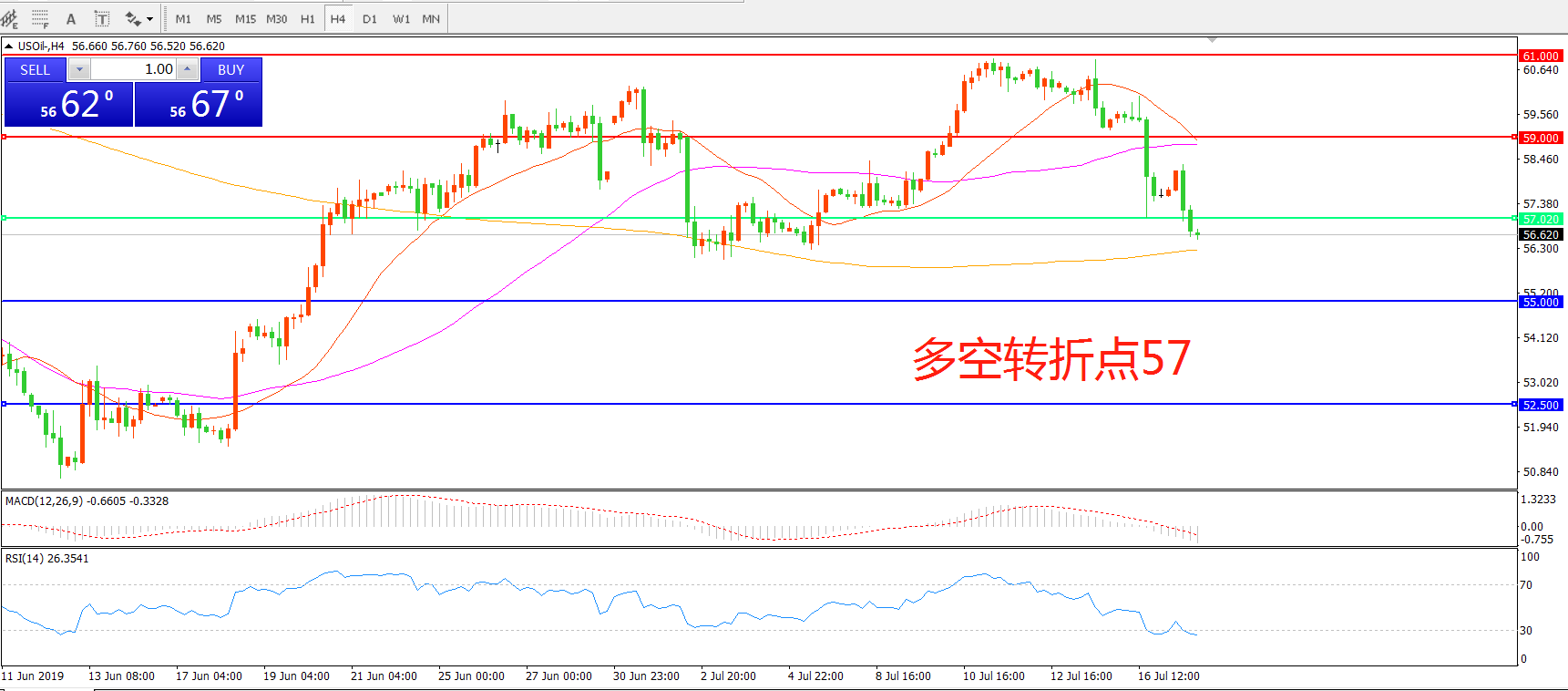 交易策略:在57.00之下看跌,目标55.00    52.50