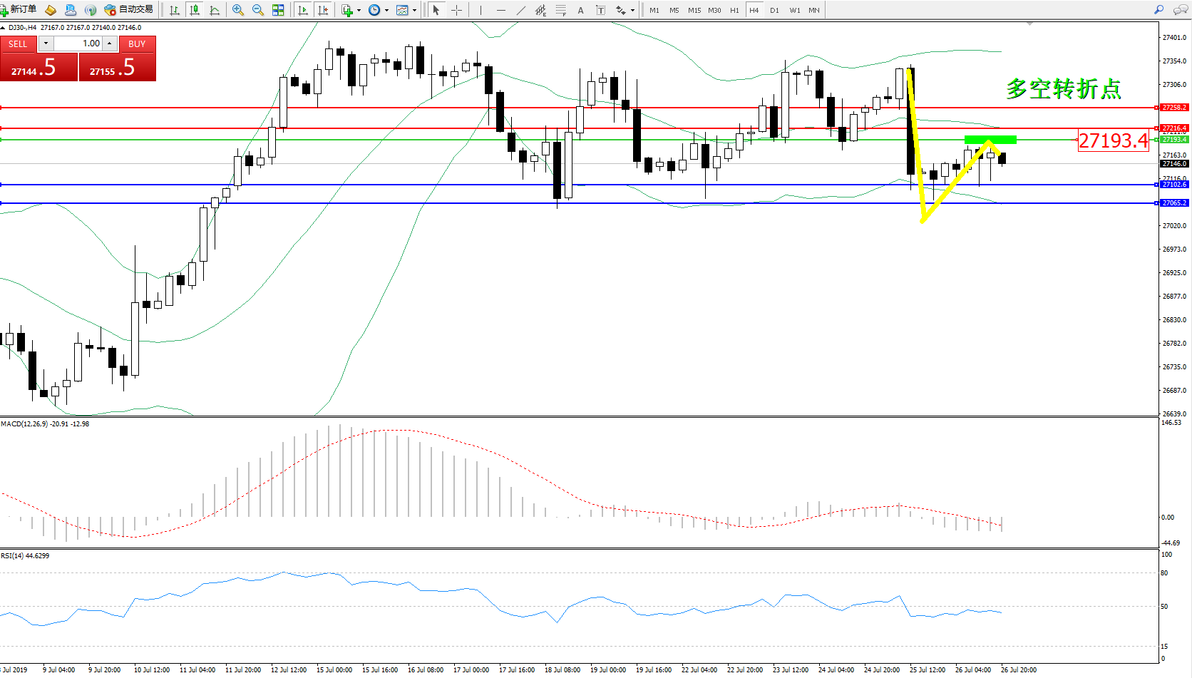 道琼斯指数726日(周五)收盘上涨51.50点,涨幅0.19%,报27192.45点。由于耐用品订单和二季度GDP等数据好于预期,美元指数一度顶破98关口阻力,创半周新高;国内生产总值报告好于预期,企业盈利继续好于预期,刺激了股市上涨;但你也可以看到利率继续保持低位,人们在期待美联储降息;在目前这个业绩公布期,上市公司盈利报告总体上提振了股市,不过投资者仍在密切关注任何显示企业盈利放缓的迹象。