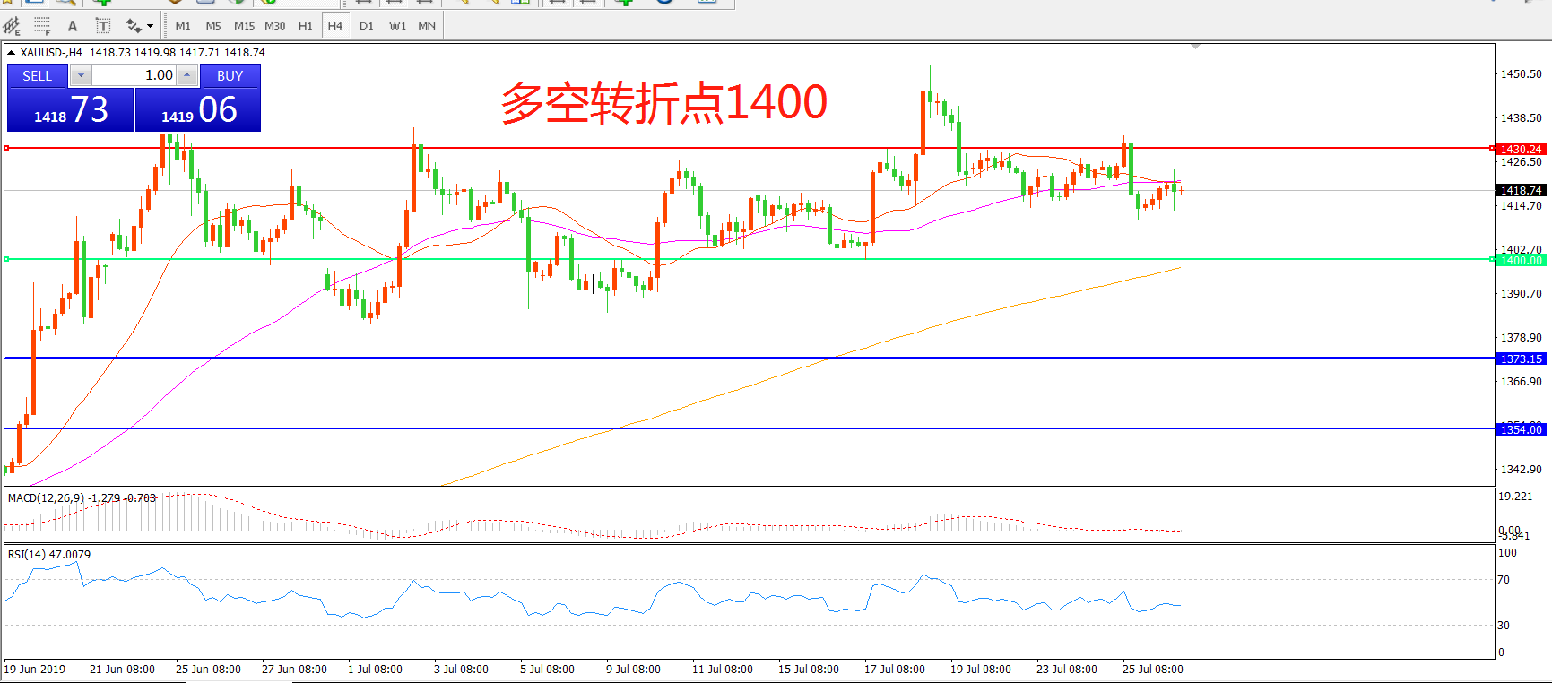 备选策略:在1400.00之下看跌,目标1373.00 1354.00