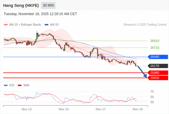 交易策略: 在 26440 之下,看跌,目标价位为 25980 ,然后为 25830 。