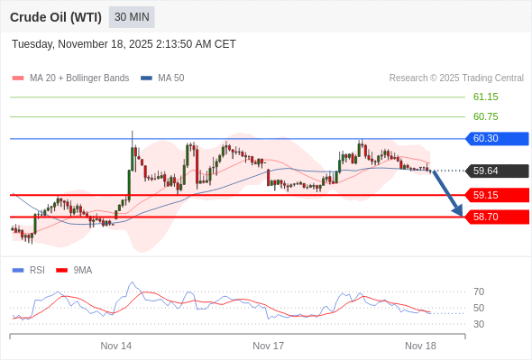 在 60.30 之下,看跌,目标价位为 59.15 ,然后为 58.70 。