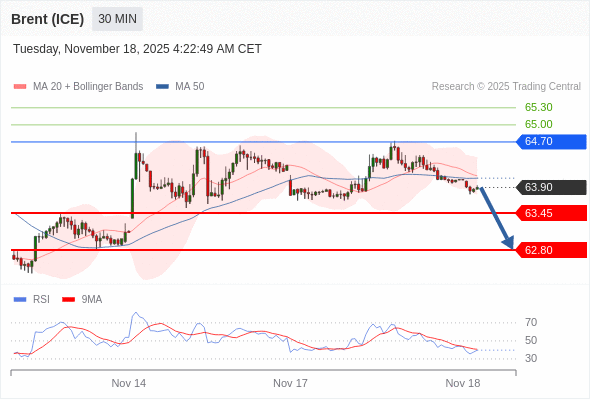在 64.70 之下,看跌,目标价位为 63.45 ,然后为 62.80 。