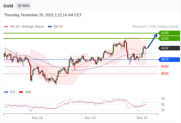 在 4070 之上,看涨,目标价位为 4130 ,然后为 4145 。