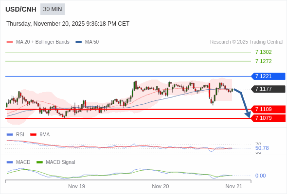 交易策略: 在进一步下跌之前,反弹至 7.1221 附近。