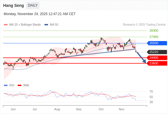 恒生指数 短线: 反转向下。