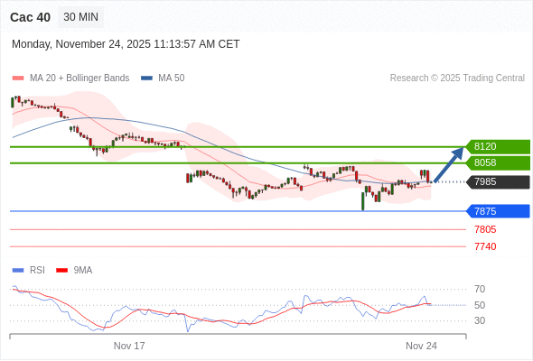 在 7875 之上,看涨,目标价位为 8058 ,然后为 8120 。