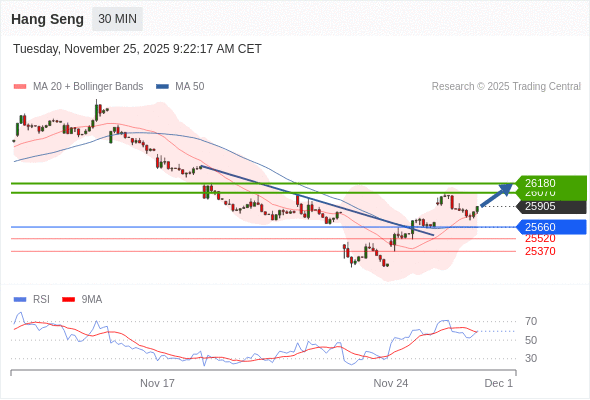在 25660 之上,看涨,目标价位为 26070 ,然后为 26180 。