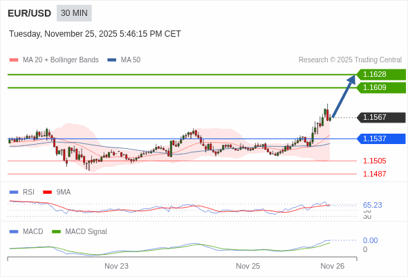 交易策略: 看涨,当 1.1537 为支撑位。