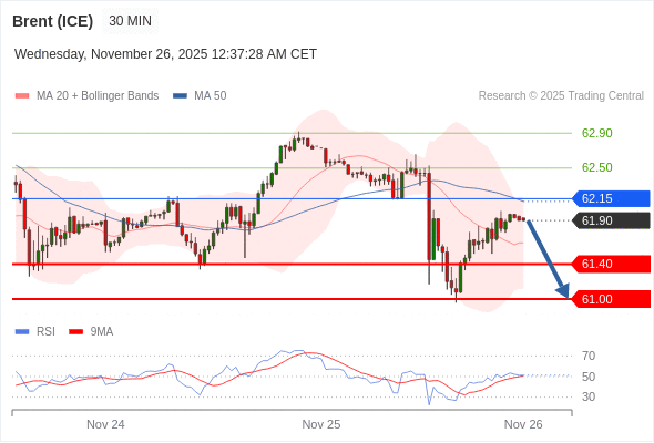 在 62.15 之下,看跌,目标价位为 61.40 ,然后为 61.00 。