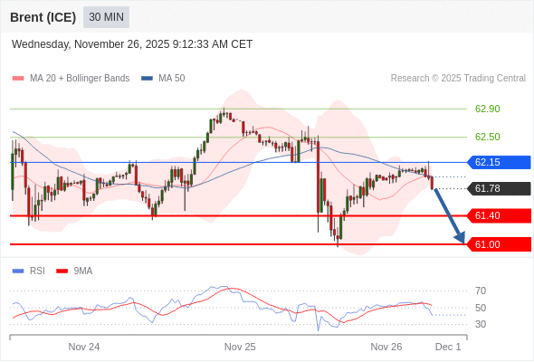 在 62.15 之下,看跌,目标价位为 61.40 ,然后为 61.00 。