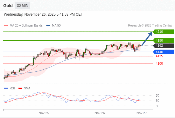 在 4140 之上,看涨,目标价位为 4180 ,然后为 4210 。