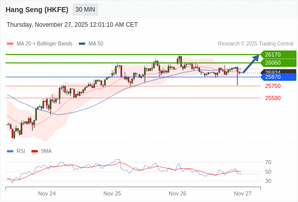在 25870 之上,看涨,目标价位为 26060 ,然后为 26170 。