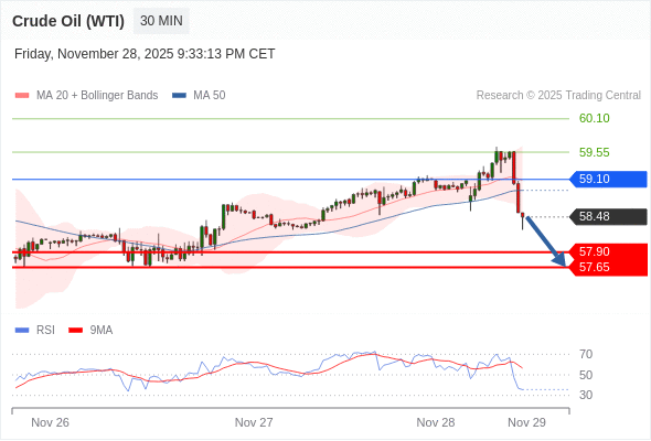 在 59.10 之下,看跌,目标价位为 57.90 ,然后为 57.65 。