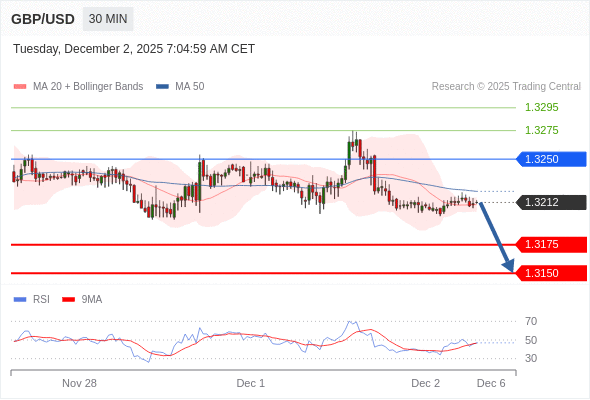 交易策略: 在 1.3250 之下,看跌,目标价位为 1.3175 ,然后为 1.3150 。