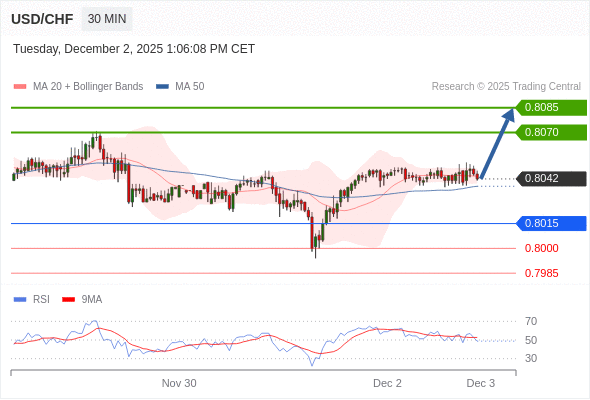 在 0.8015 之上,看涨,目标价位为 0.8070 ,然后为 0.8085 。