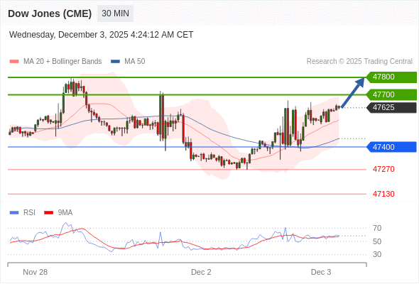 在 47400 之上,看涨,目标价位为 47700 ,然后为 47800 。