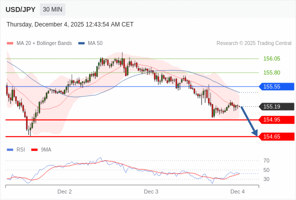 在 155.55 之下,看跌,目标价位为 154.95 ,然后为 154.65 。