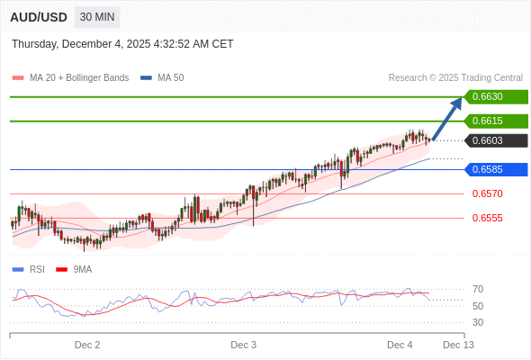 在 0.6585 之上,看涨,目标价位为 0.6615 ,然后为 0.6630 。