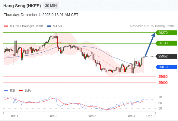 在 25810 之上,看涨,目标价位为 26130 ,然后为 26270 。