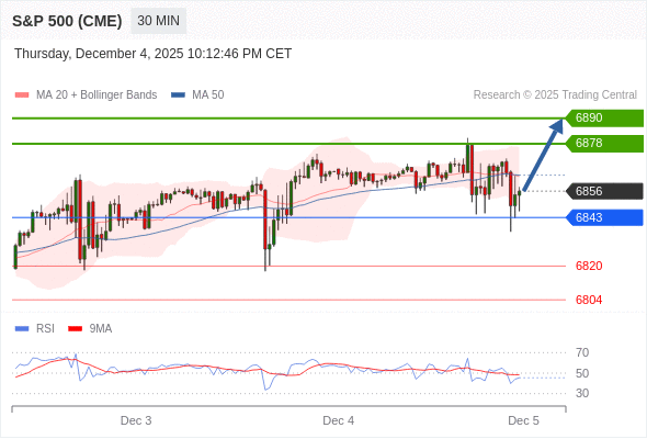 在 6843 之上,看涨,目标价位为 6878 ,然后为 6890 。