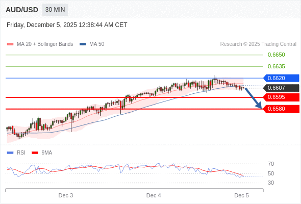 在 0.6620 之下,看跌,目标价位为 0.6595 ,然后为 0.6580 。