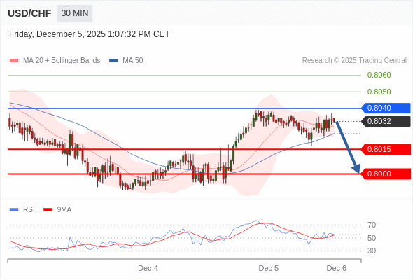 在 0.8010 之上,看涨,目标价位为 0.8050 ,然后为 0.8070 。