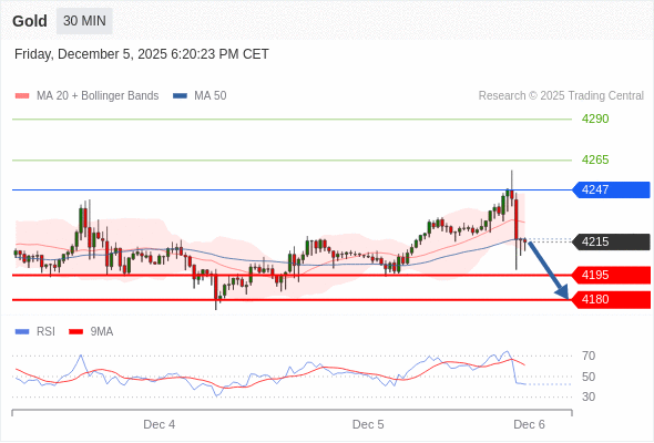 在 4247 之下,看跌,目标价位为 4195 ,然后为 4180 。