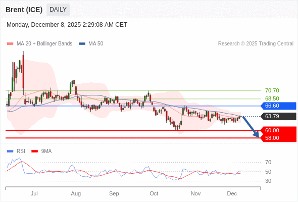 在 66.60 之下,看跌,目标价位为 60.00 ,然后为 58.00 。