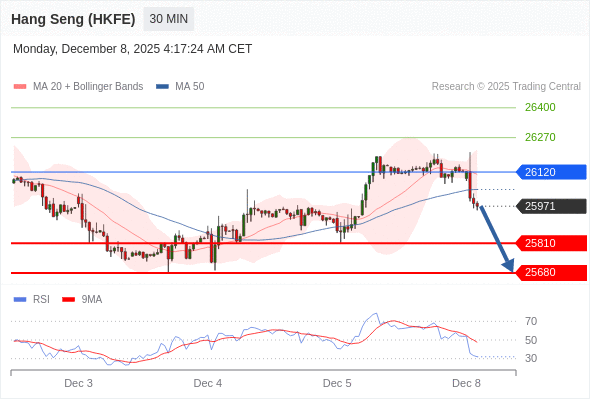 交易策略: 在 26120 之下,看跌,目标价位为 25810 ,然后为 25680 。