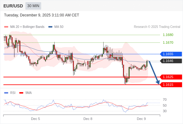 在 1.1655 之下,看跌,目标价位为 1.1625 ,然后为 1.1615 。