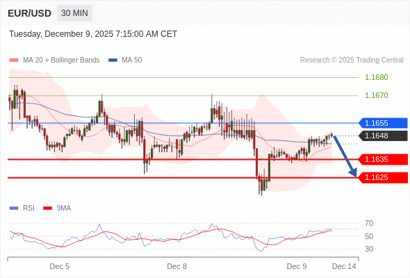 在 1.1655 之下,看跌,目标价位为 1.1635 ,然后为 1.1625 。