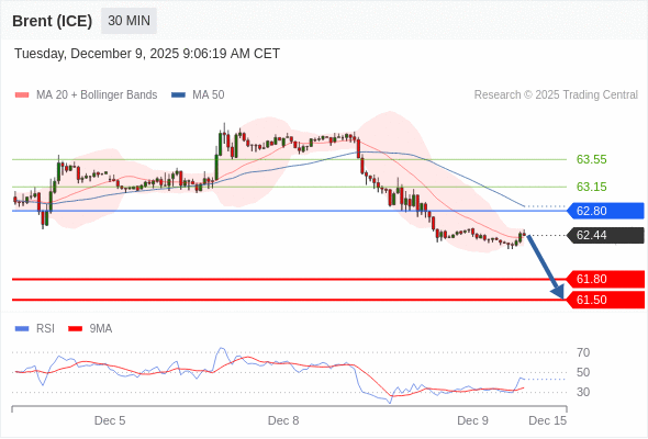 交易策略: 在 62.80 之下,看跌,目标价位为 61.80 ,然后为 61.50 。