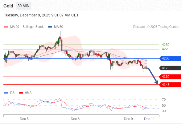 在 4200 之下,看跌,目标价位为 4160 ,然后为 4143 。