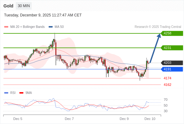 在 4191 之上,看涨,目标价位为 4231 ,然后为 4258 。