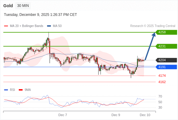 在 4191 之上,看涨,目标价位为 4231 ,然后为 4258 。