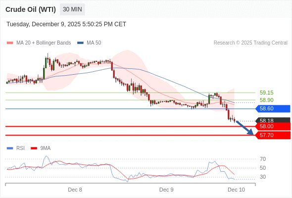 在 58.60 之下,看跌,目标价位为 58.00 ,然后为 57.70 。