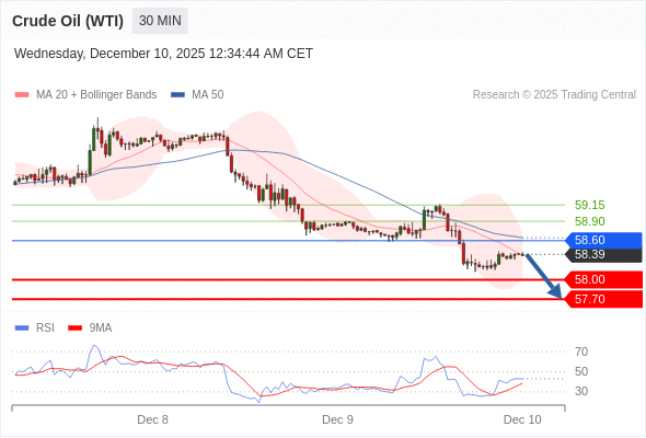 交易策略: 在 58.60 之下,看跌,目标价位为 58.00 ,然后为 57.70 。